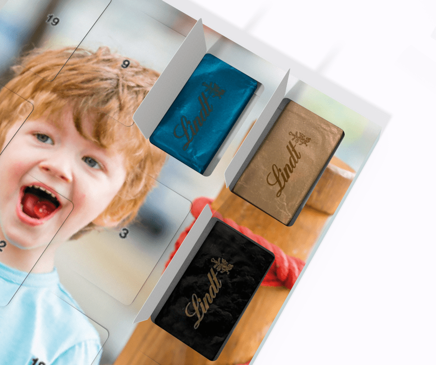 Foto Adventskalender mit Lindt Schokolade im Hochformat